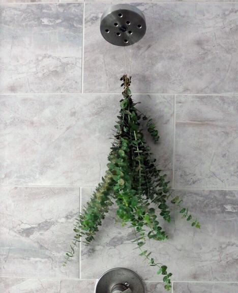 A simply perfect idea for a refreshing shower experience, sprigs of eucalyptus to hang from your showerhead.